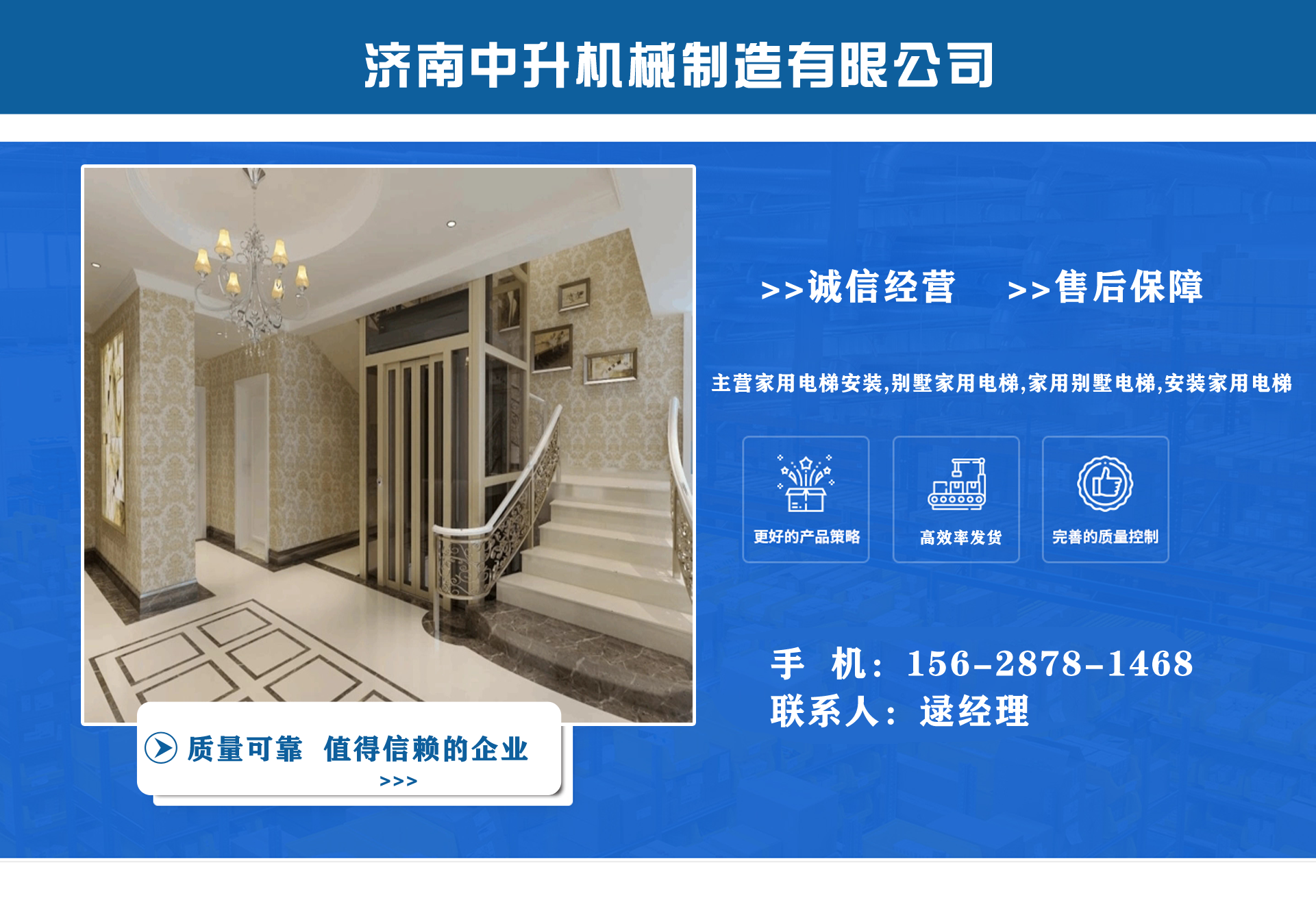 濟南中升機械制造有限公司主營家用電梯安裝,別墅家用電梯,家用別墅電梯,安裝家用電梯等業(yè)務(wù),質(zhì)量可靠,值得信賴! 公司為客戶提供免費上門測量,根據(jù)實際情況1對1服務(wù),保障符合用戶需求,終身提供售后服務(wù),讓用戶買的舒心用的放心。匠心團(tuán)隊,打造信賴產(chǎn)品,我們有團(tuán)結(jié)、奮進(jìn)拼搏的匠心團(tuán)隊,為您提供可信賴的品質(zhì)保證?! 膭?chuàng)立以來一直嚴(yán)格執(zhí)行質(zhì)量管理體系、環(huán)境管理體系等相關(guān)標(biāo)準(zhǔn)管理體系,“顧客滿意”是我們始終如一的追求。我們有屬于自己培養(yǎng)的安裝隊伍,24小時服務(wù)電話,為您提供可靠的服務(wù)與支持?! ∥覀兊脑妇笆墙ㄔO(shè)國內(nèi)具有影響力的電梯公司,做城市美好空間的好伙伴。...